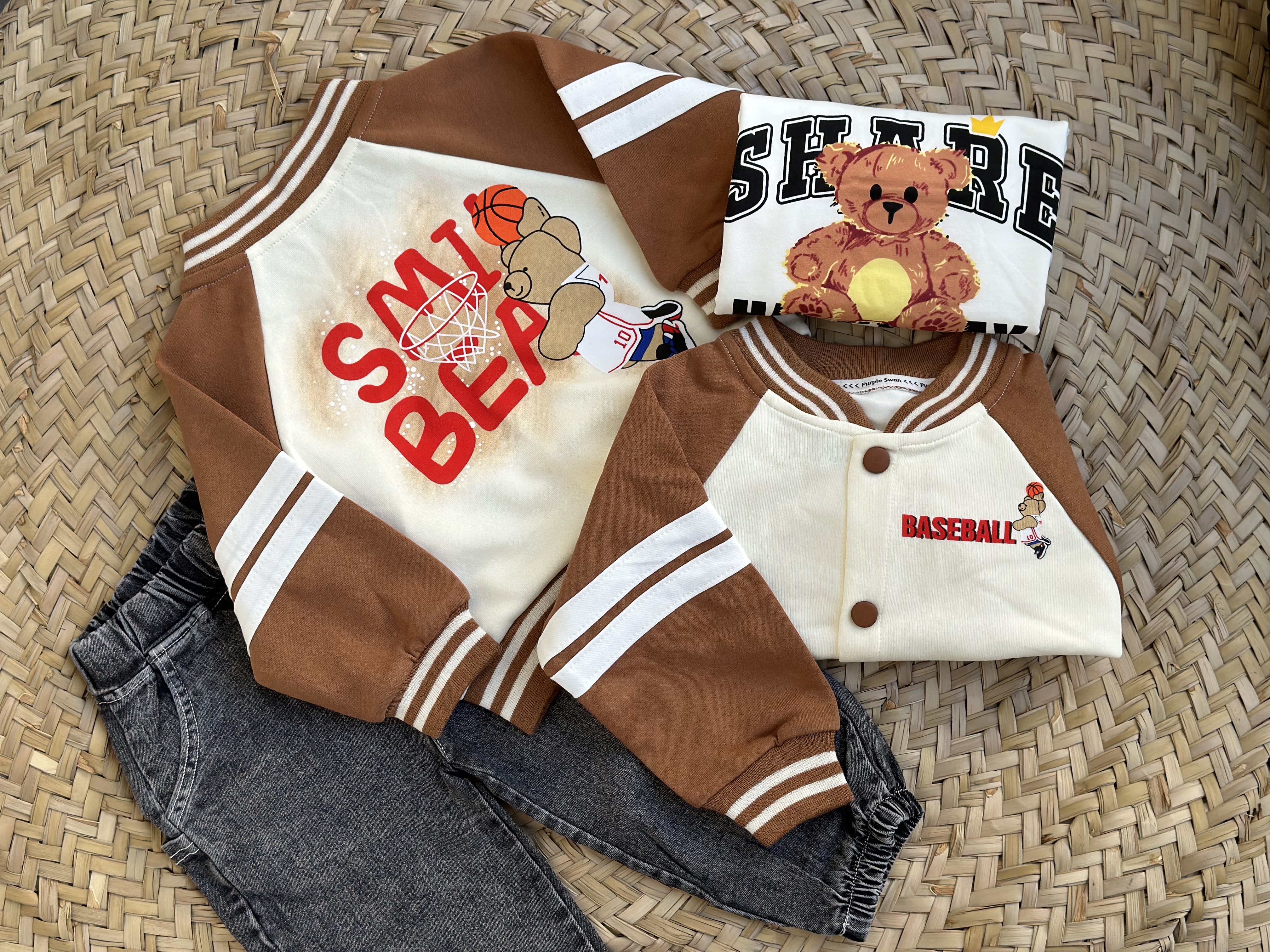 سه تیکه(بامبرشلواروبلوز)اسپرت بچگانه مناسب۶ماه تا۵سال وارداتی