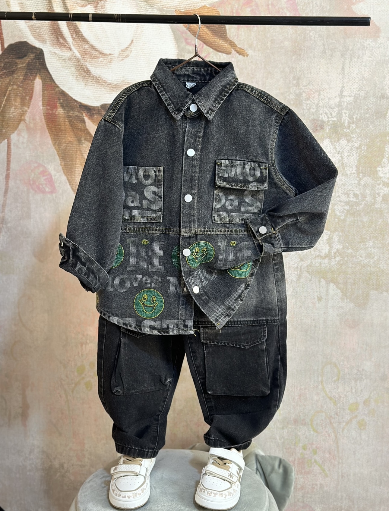 کت جین ذغالی وارداتی مناسب ۳تا۱۲سال