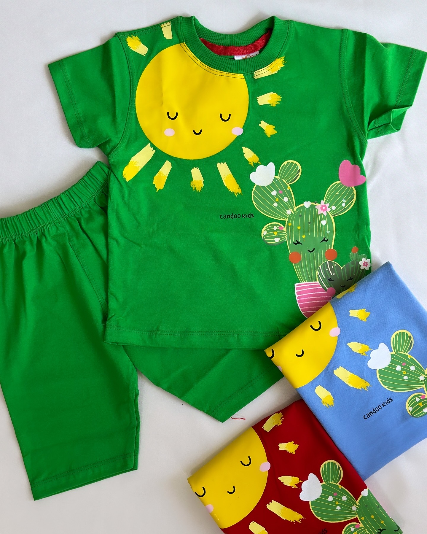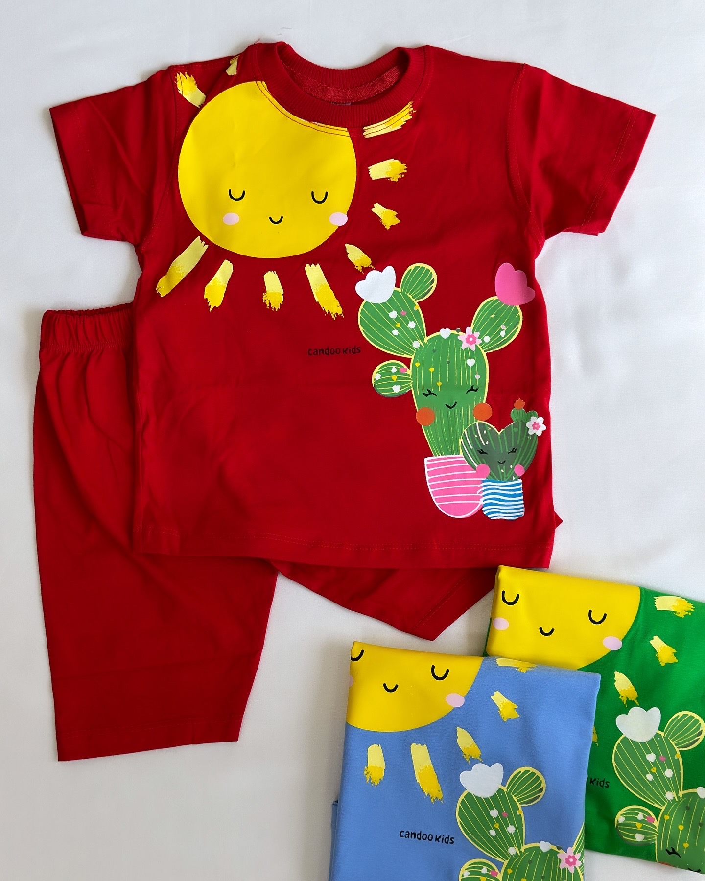 تیشرت شلوارک اسپرت(دخترانه و پسرانه)،مناسب ۱تا۸سال،طرح کاکتوس،نخ پنبه ای،رنگ نیلی قرمز و سبز