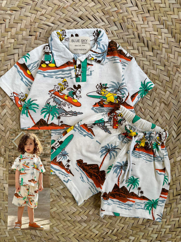 تیشرت شلوارک اسپرت ،مناسب ۱تا۷سال،طرح هاوایی
