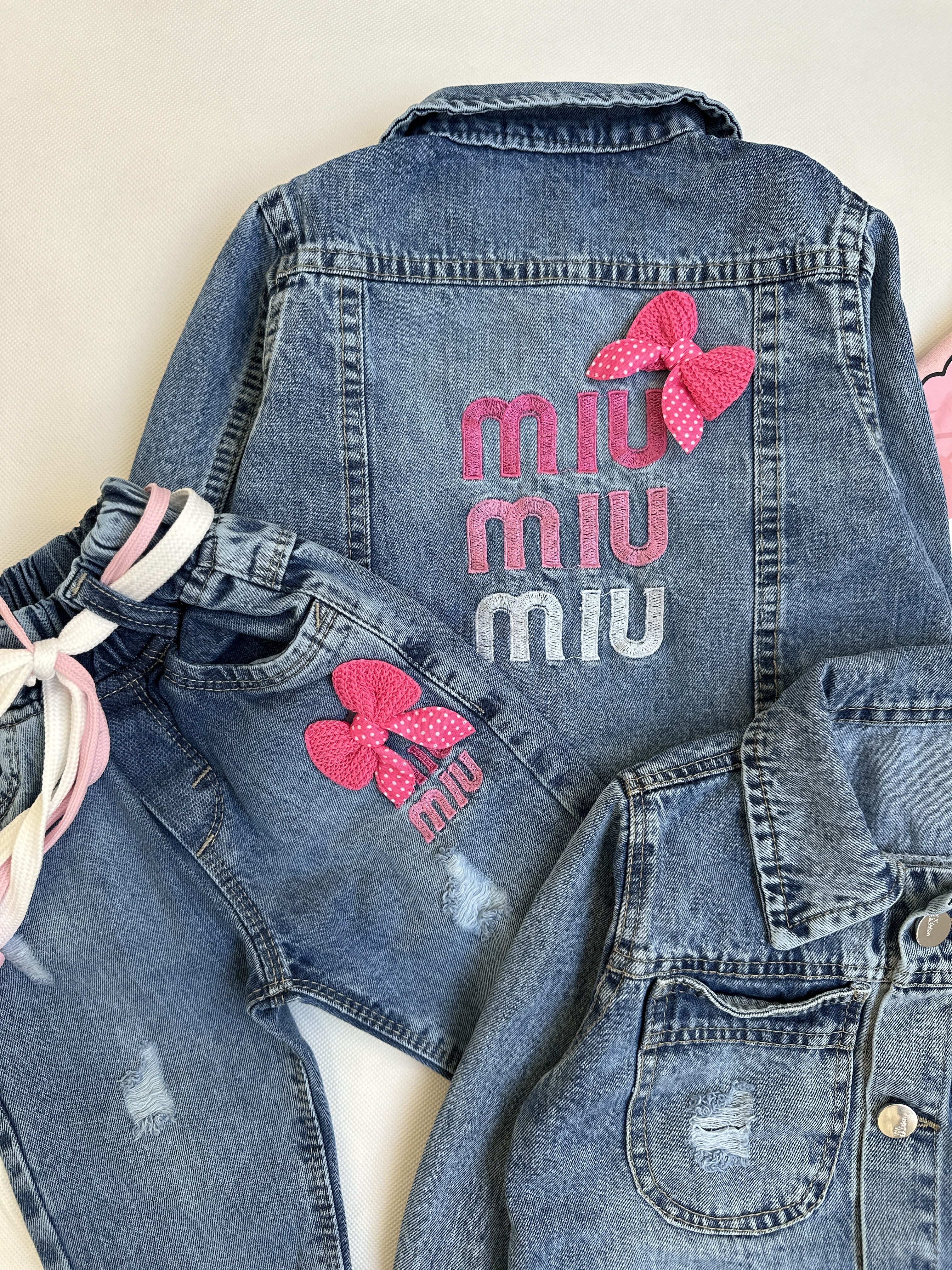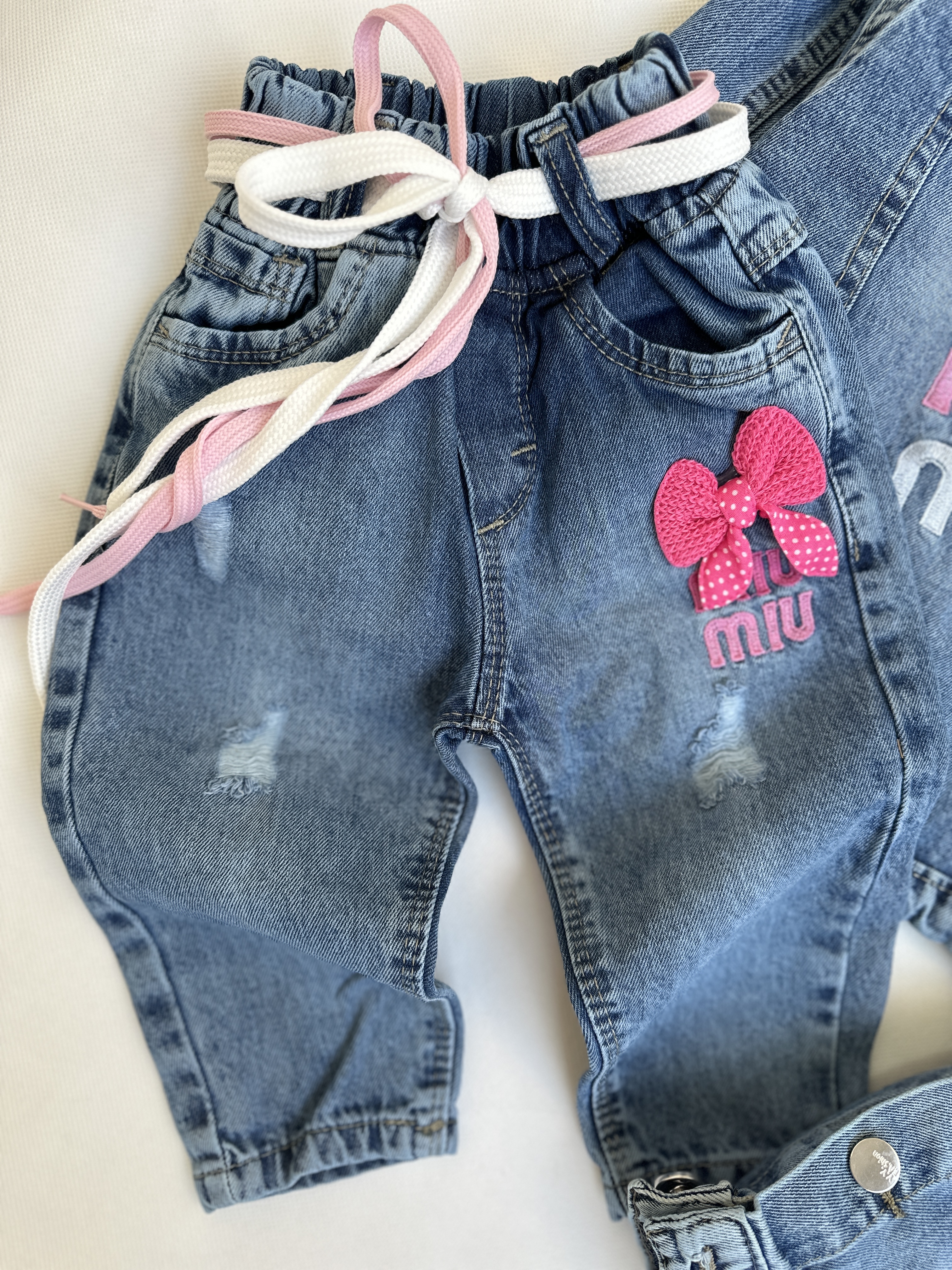 کت شلوار جین دخترونه،مناسب۵ماه تا۵سال،طرح🎀