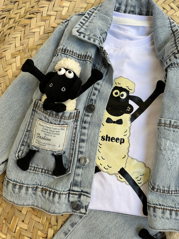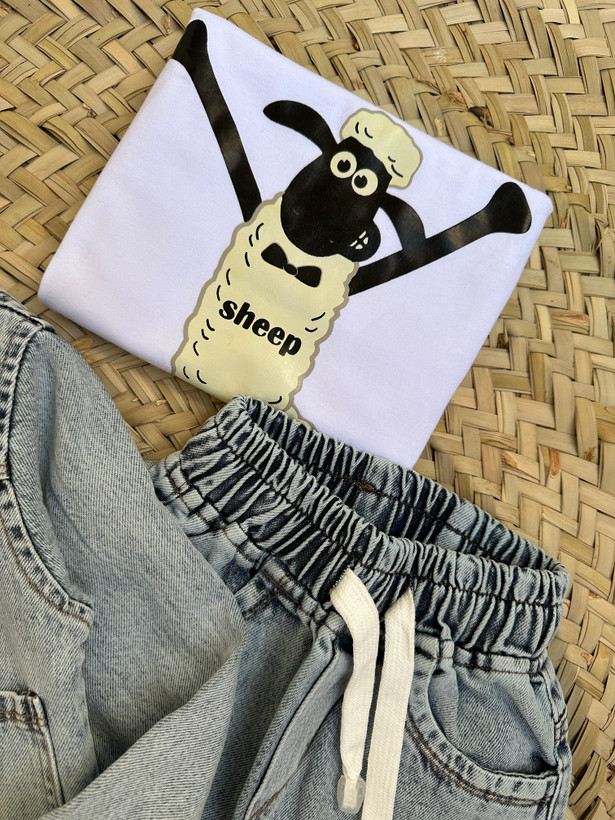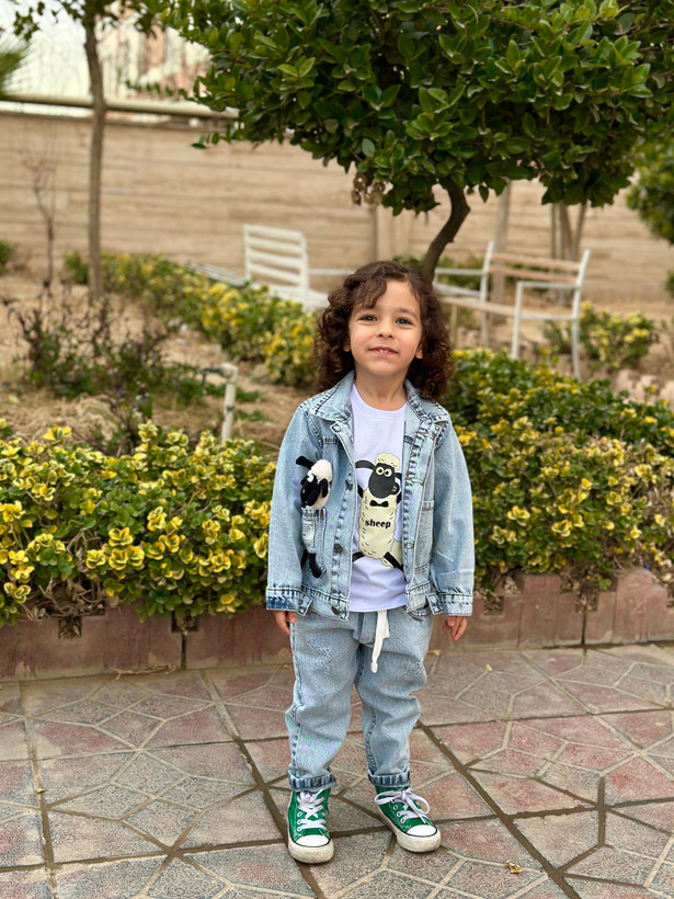 ۴تیکه (کت شلوارجین+تیشرت+بره )اسپرت(دخترونه و پسرونه)،مناسب۱تا۶سال،طرح بره ناقلا