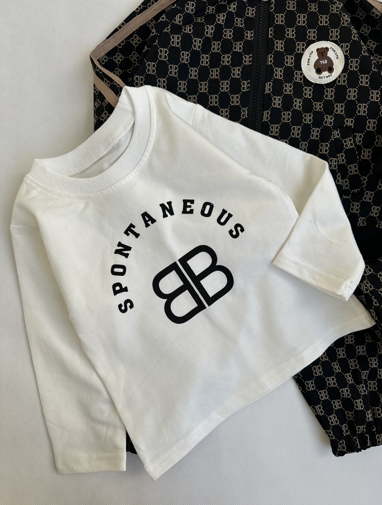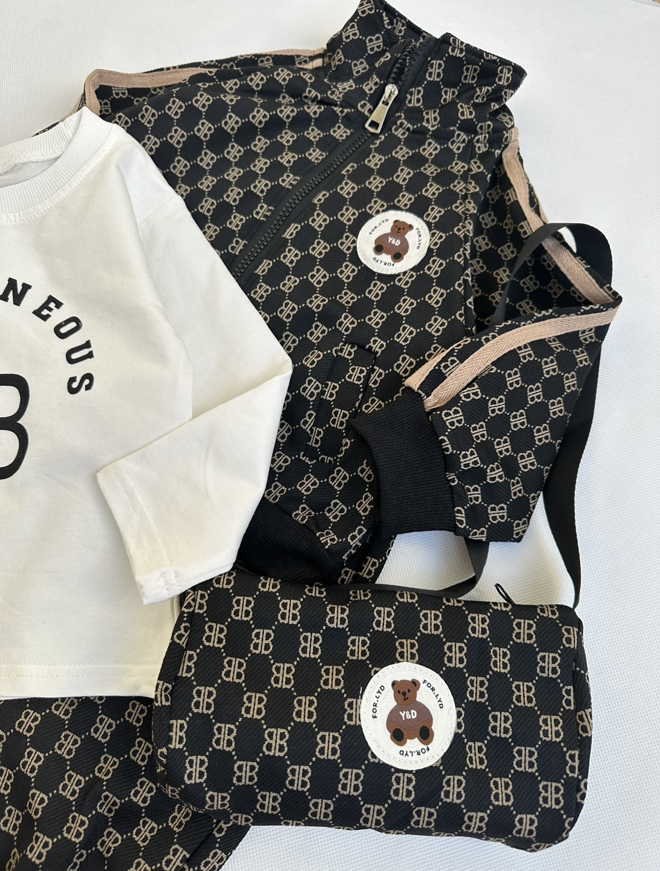 ست چهارتیکه( سویشرت شلوار کیف و بلوز)،اسپرت مناسب ۱تا۳سال