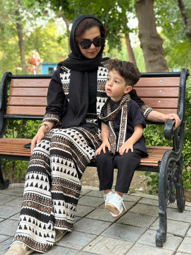 ست مادر پسری شامل (وست وپیراهن آستین کوتاه و شلوارک و مانتو شلوارمادر)