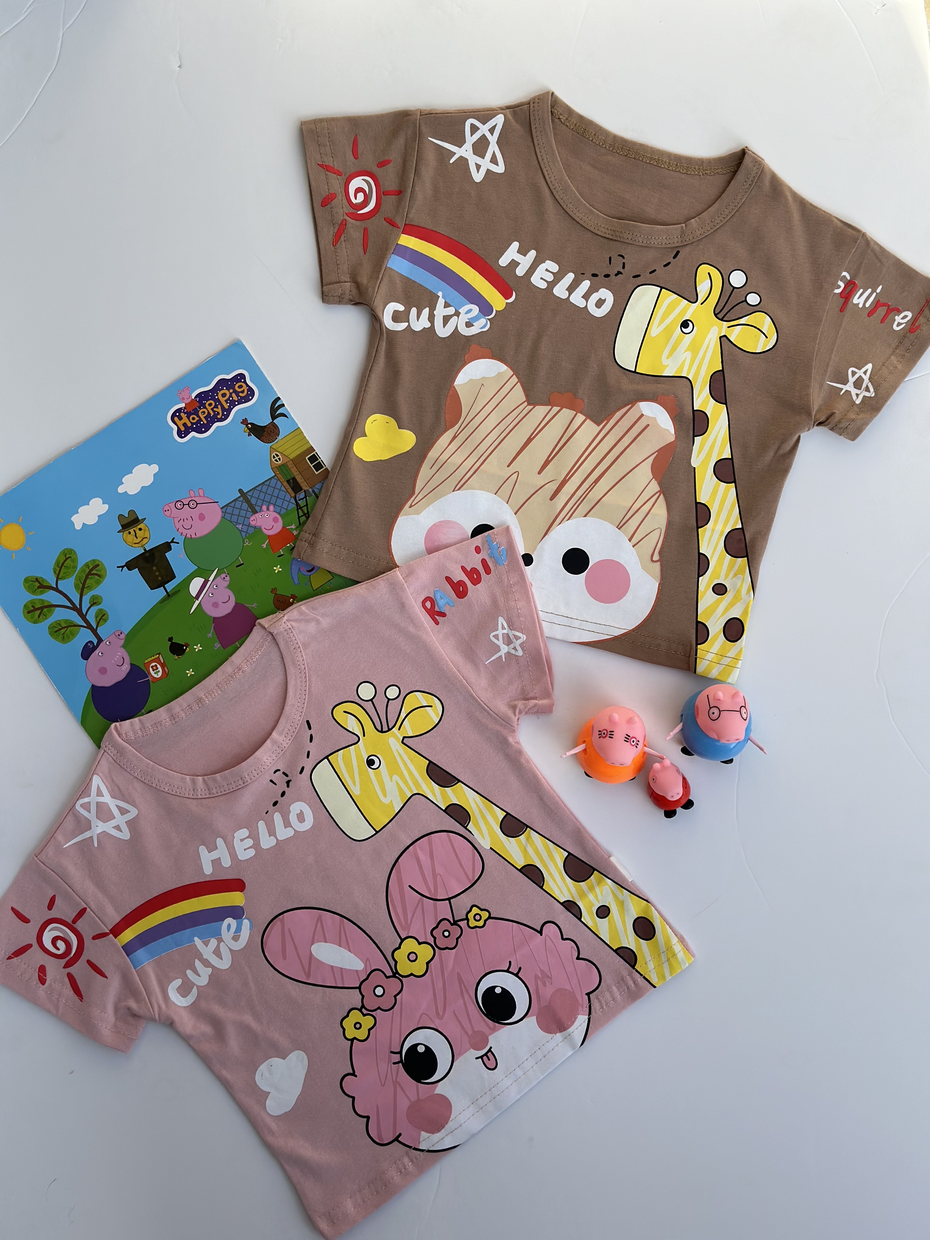 تیشرت اسپرت(دخترانه و پسرانه)،مناسب۶ماه تا۵سال،طرح حیوانات،وارداتی،رنگ شکلاتی و صورتی