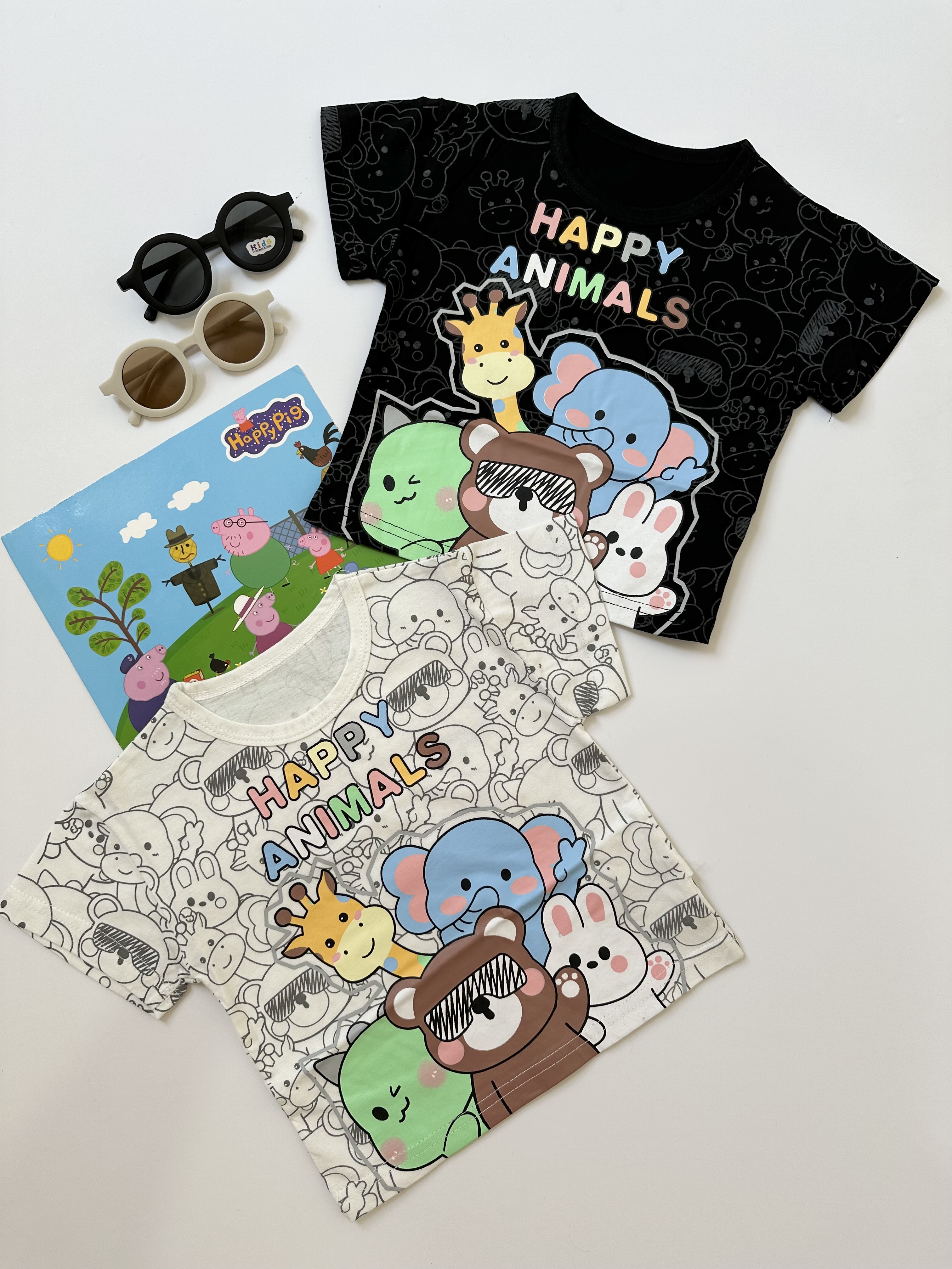 تیشرت اسپرت(دخترانه وپسرانه)،مناسب۶ماه تا۵سال،طرحhappy،وارداتی،با دورنگ سفید و مشکی