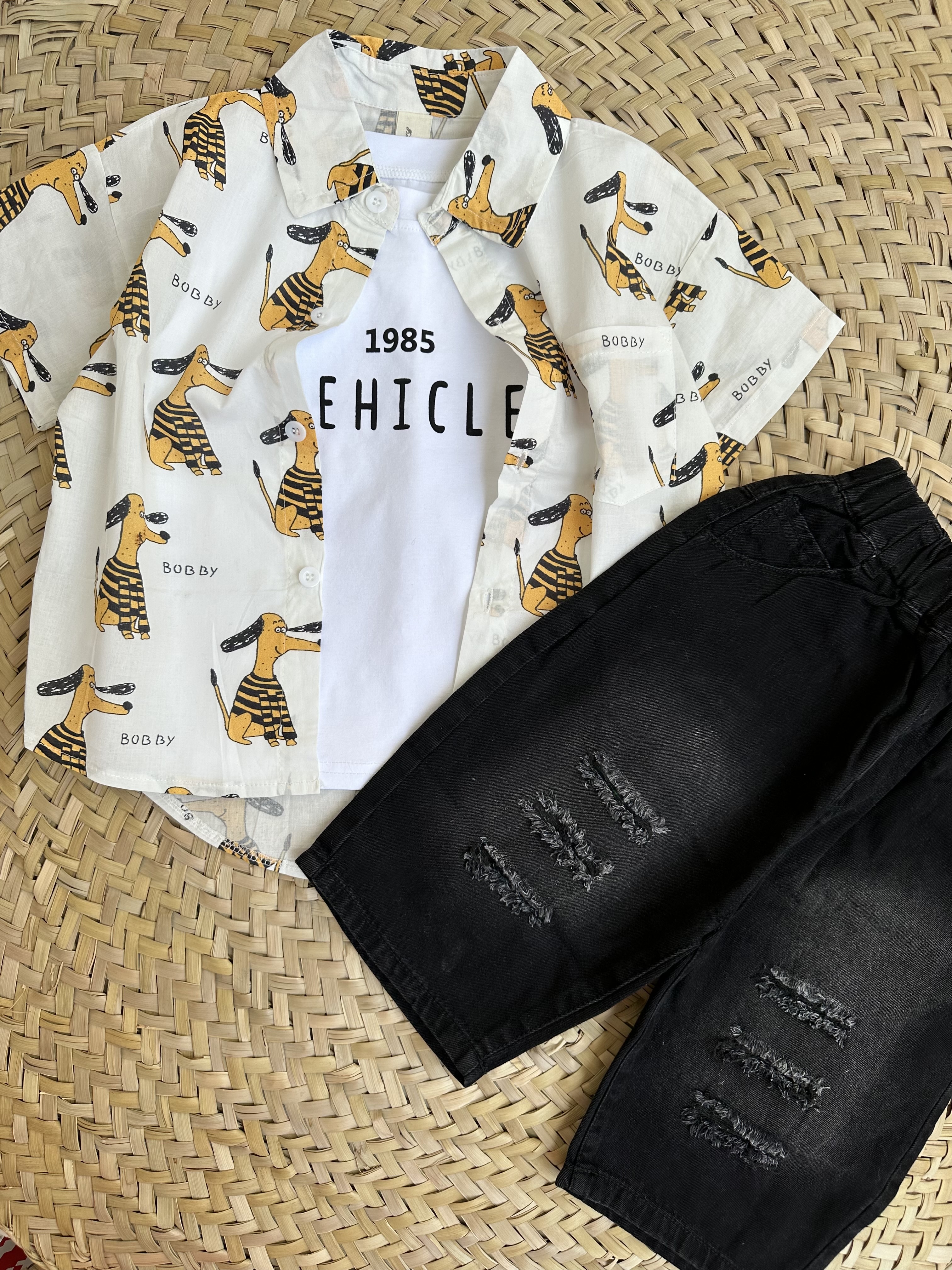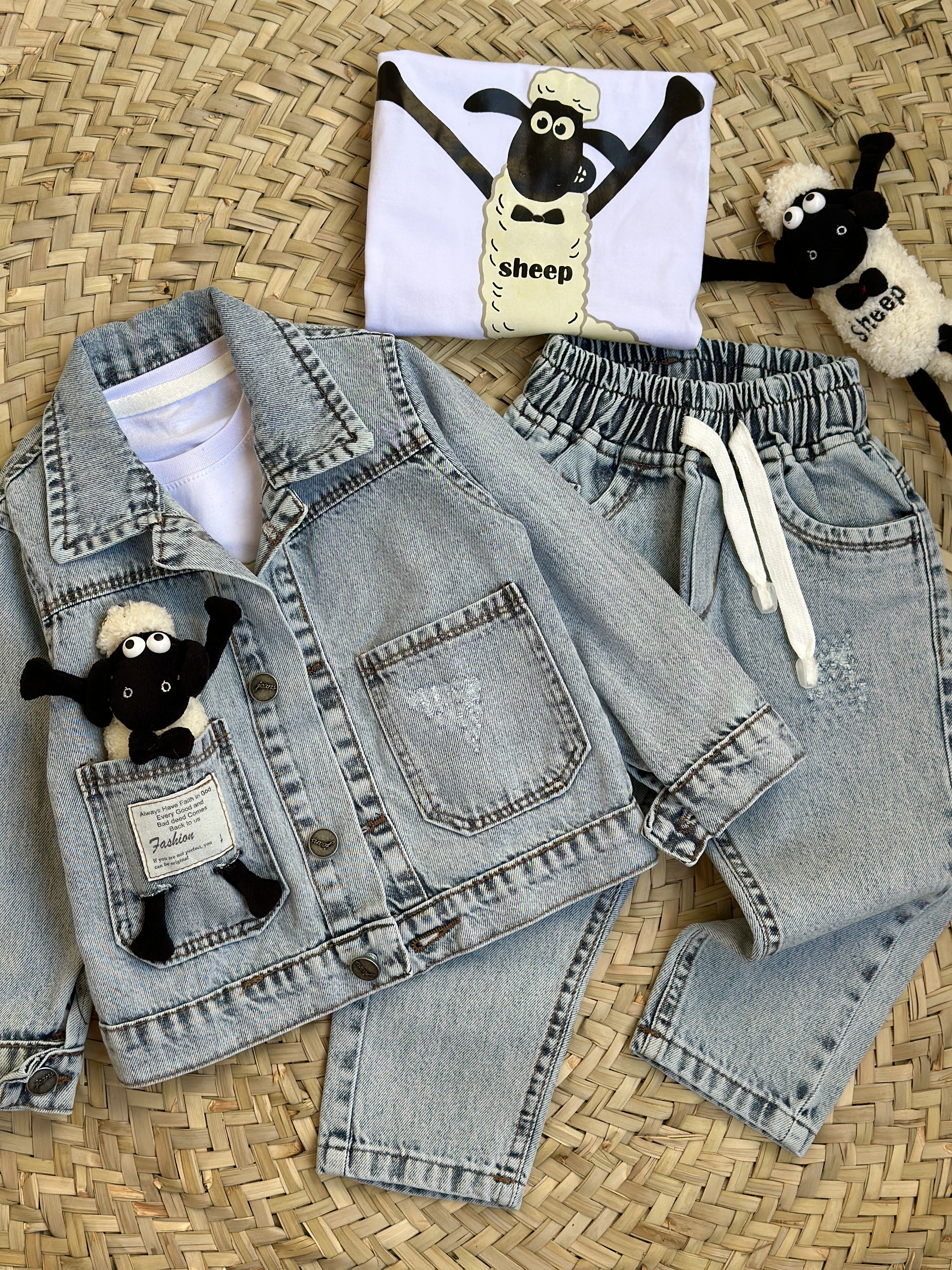 ۴تیکه (کت شلوارجین+تیشرت+بره )اسپرت(دخترونه و پسرونه)،مناسب۱تا۶سال،طرح بره ناقلا