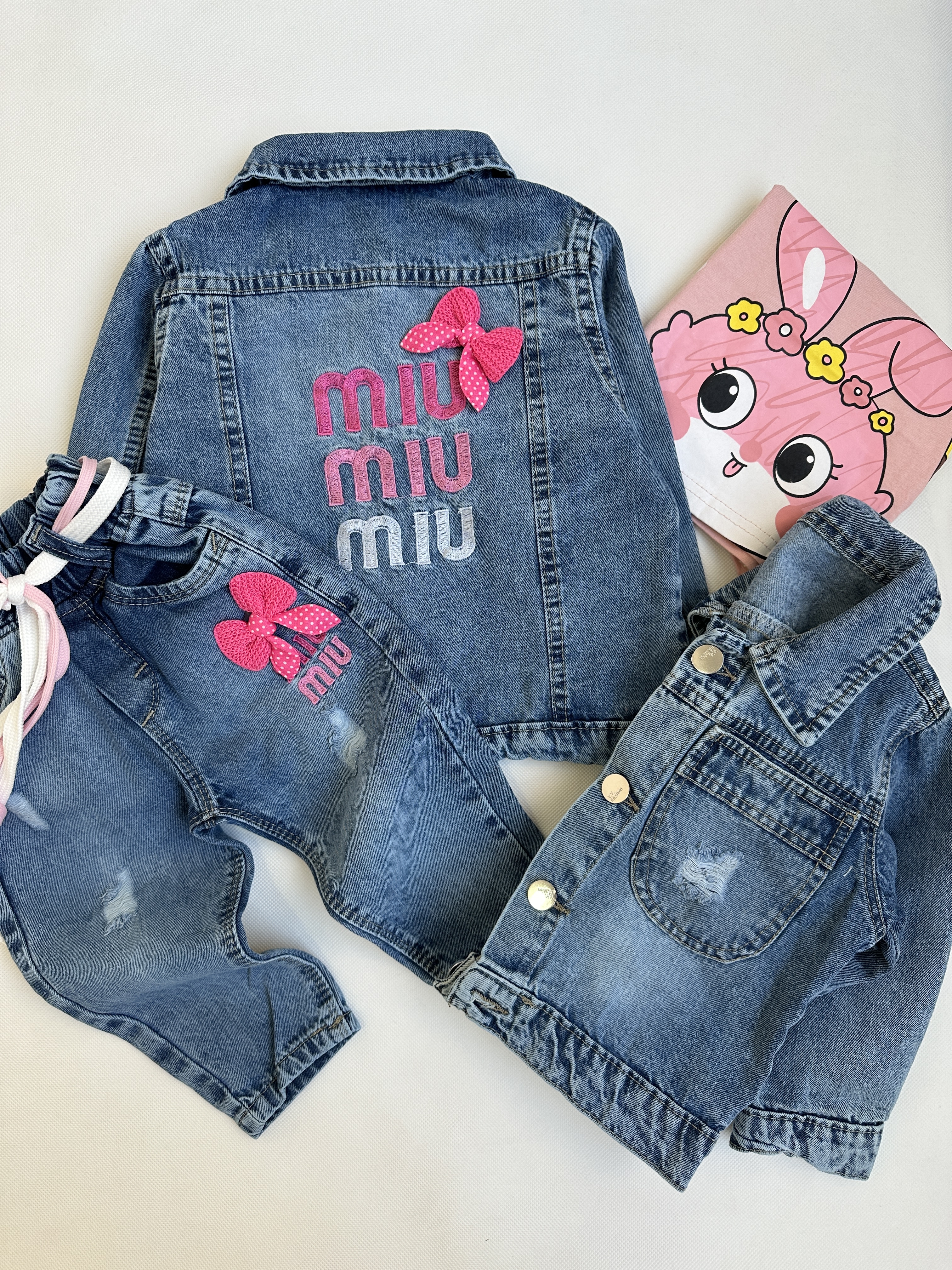 کت شلوار جین دخترونه،مناسب۵ماه تا۵سال،طرح🎀