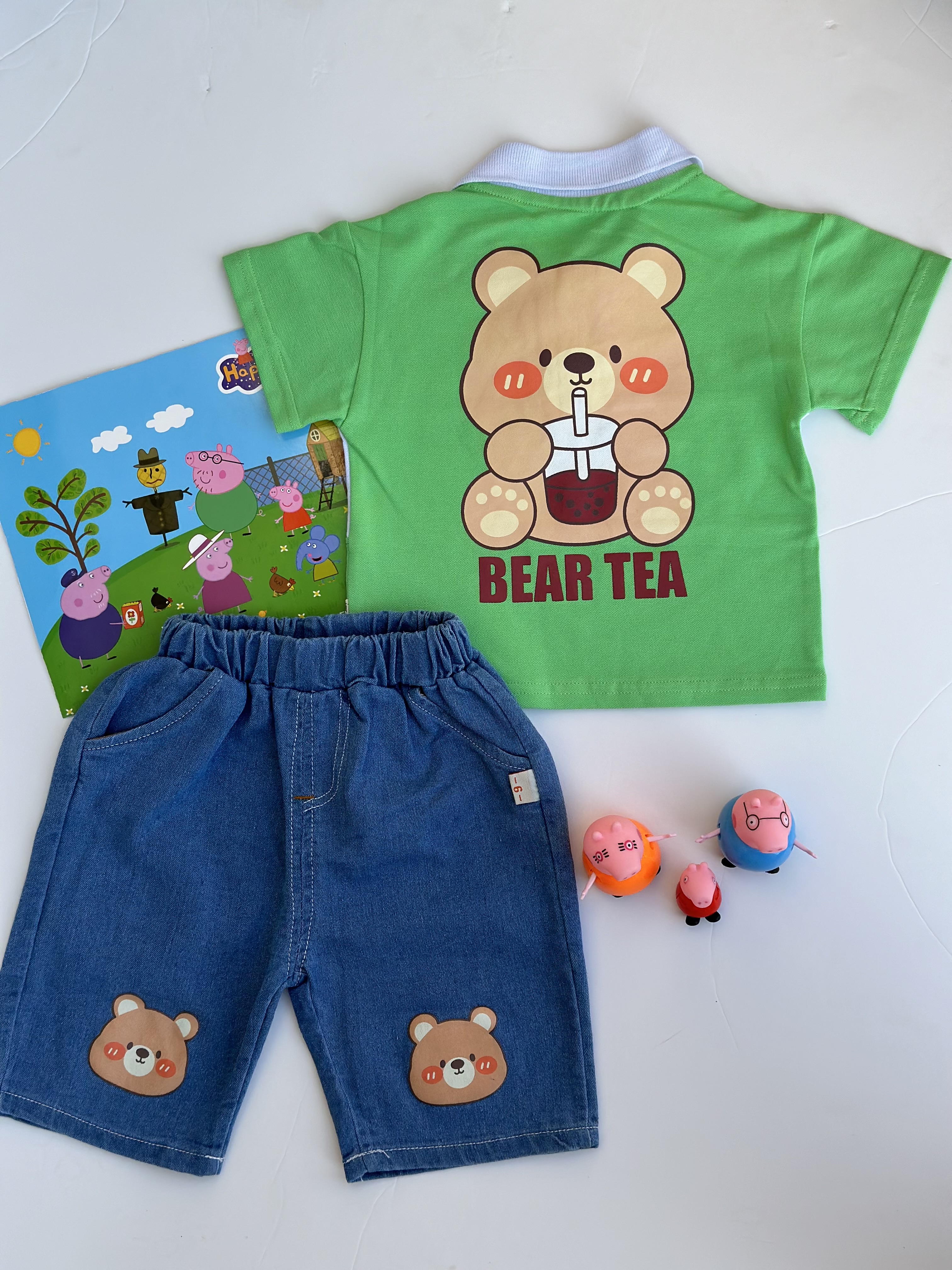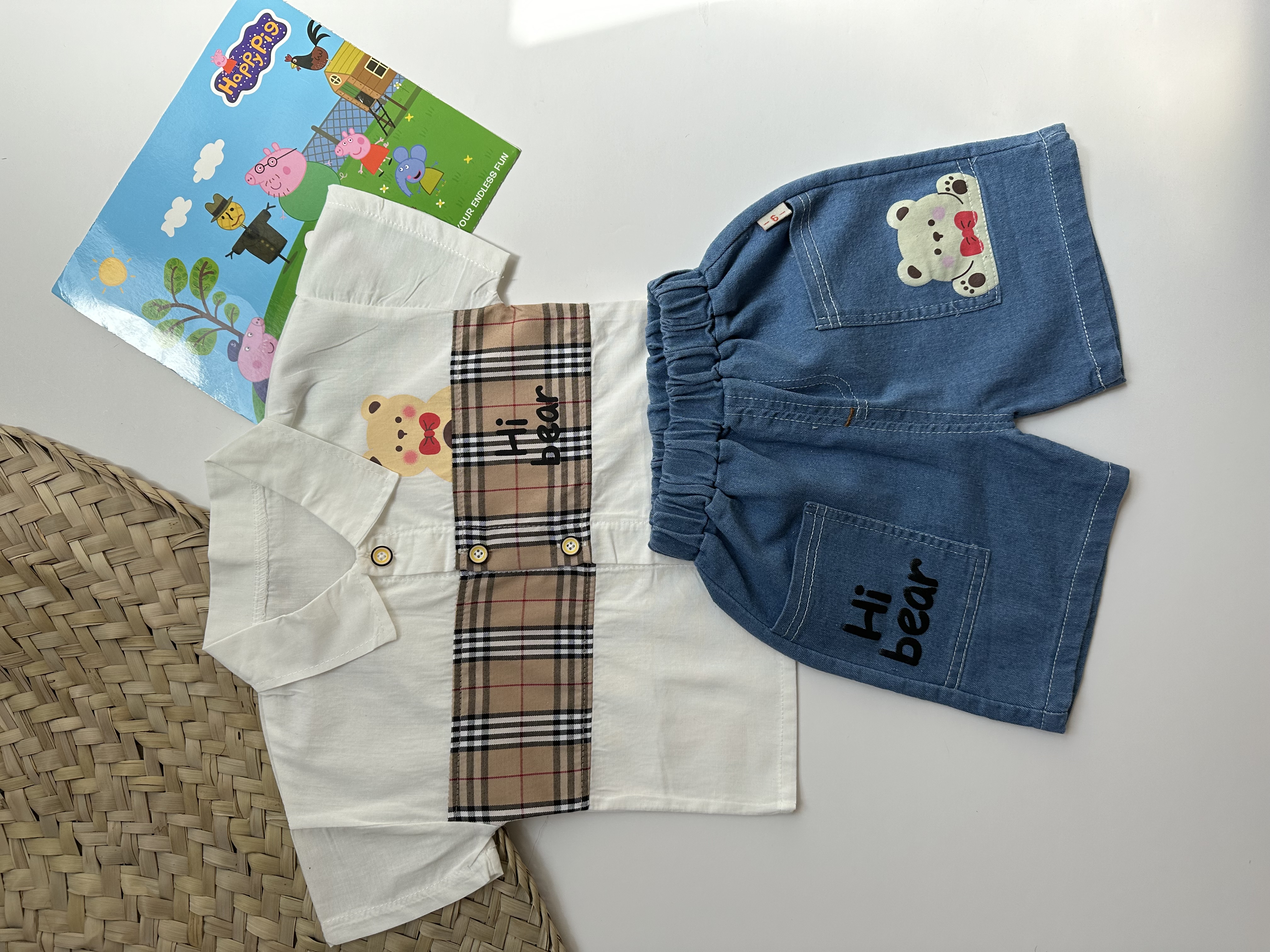 تیشرت شلوارک خرسی🧸اورجینال وارداتی تک سایز مناسب ۷تا۱۸ماه