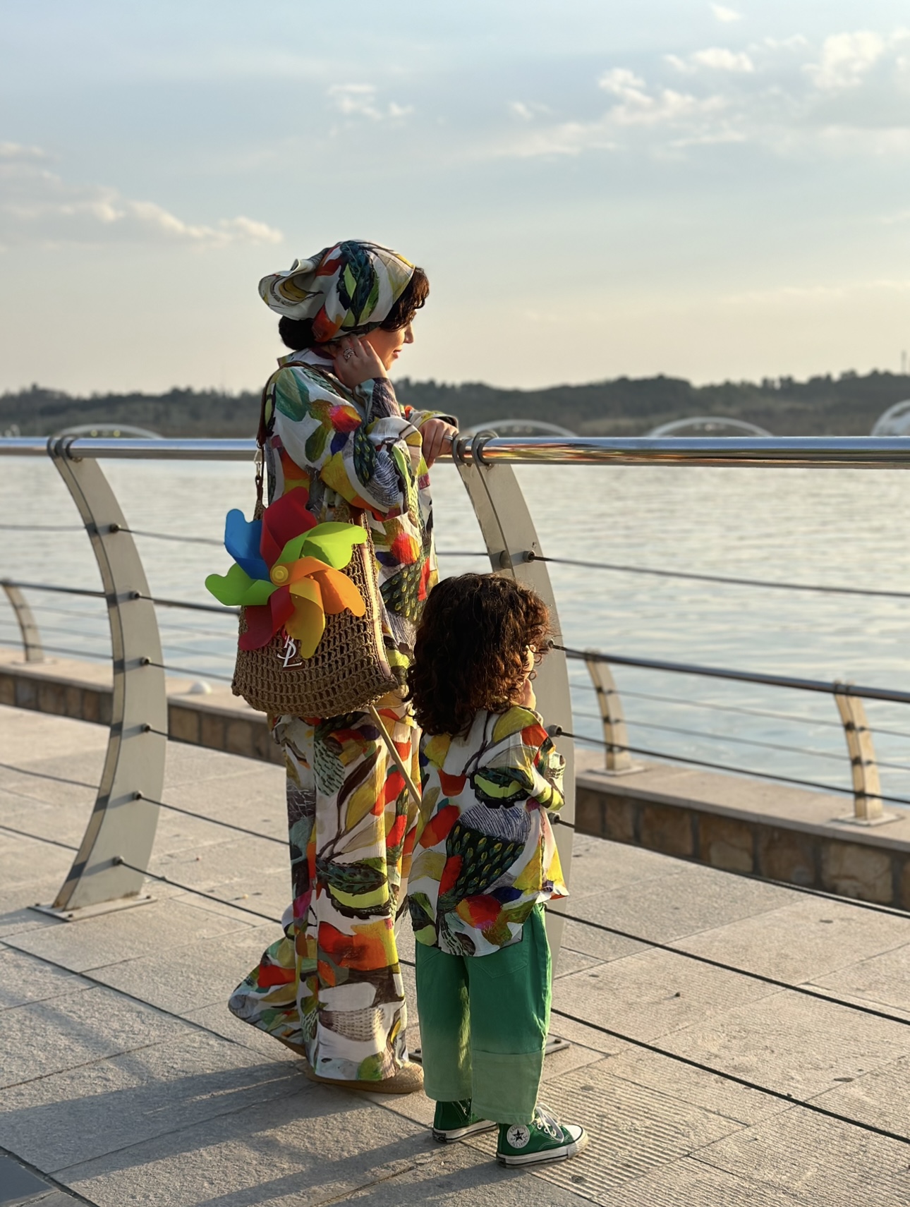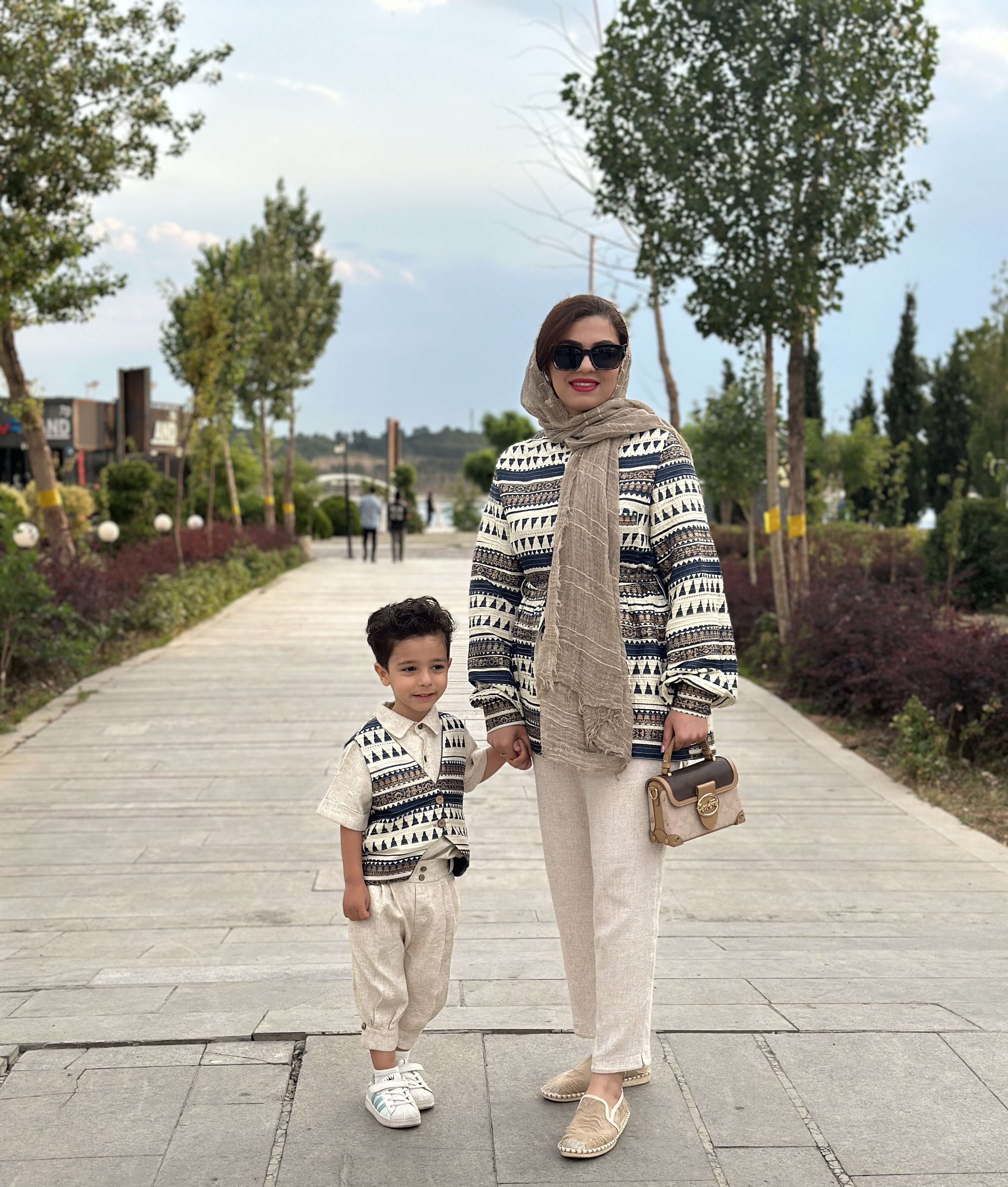 ست مادر پسری شامل (وست وپیراهن آستین کوتاه و شلوارک و مانتو شلوارمادر)
