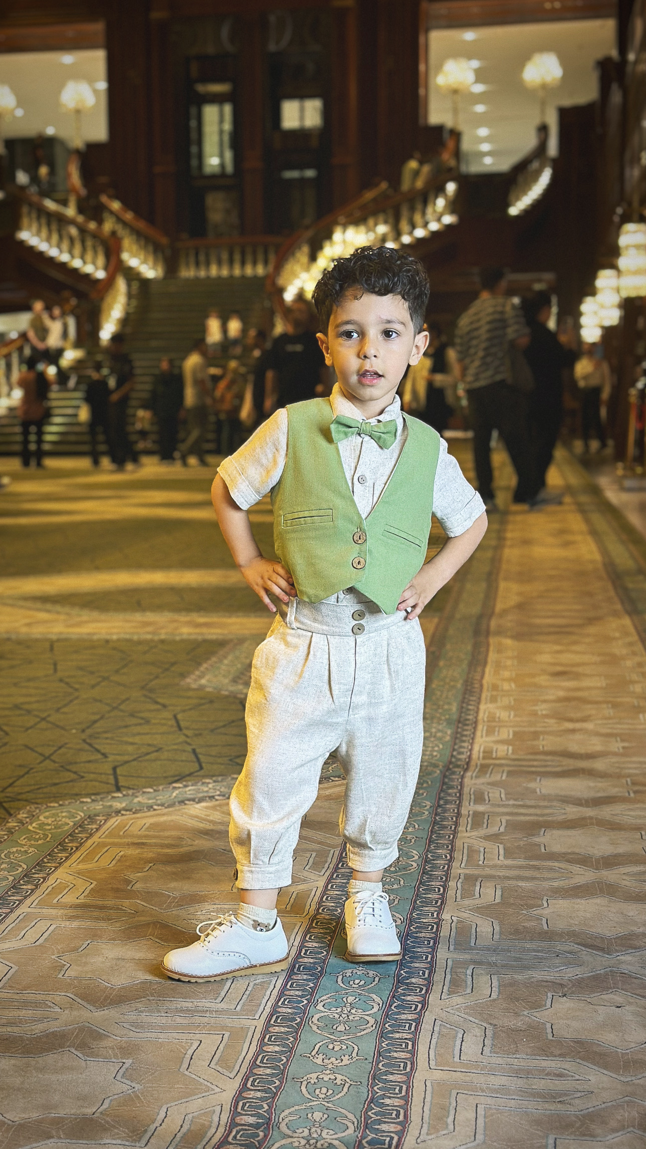 ست جلیقه دورو و پیراهن شلوارک پسرونه +پاپیون