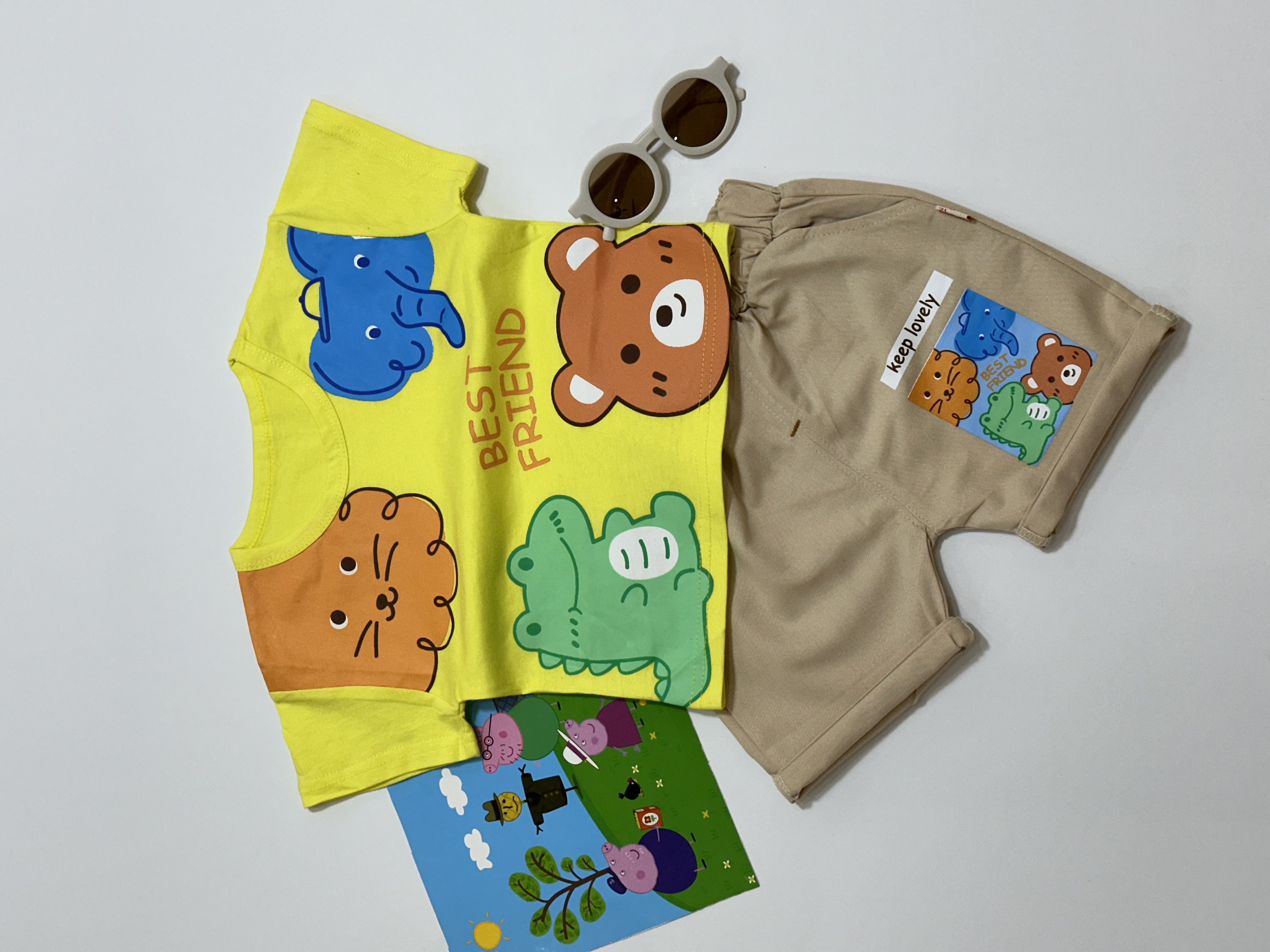 پیراهن آستین کوتاه و شورتک اورجینال وارداتی مناسب ۱-۳سال